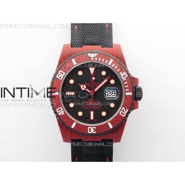 Submariner DIW Red Carbon VSF 1:1 Best Edition Black Dial on Black Nylon Strap VS3135 > Rolex