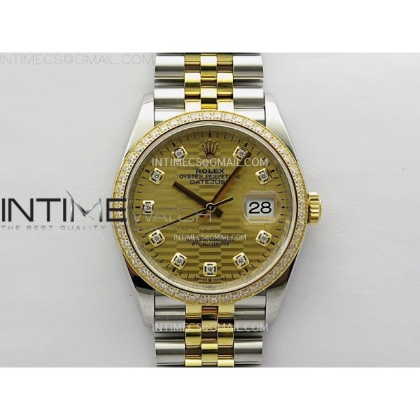 • DateJust 36 126283 904L SS/YG VSF 1:1 Best Edition Gold Fluted Dial Diamonds Markers on Jubilee Bracelet VS3235