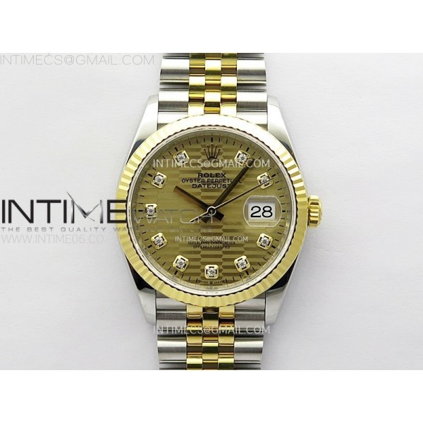DateJust 36 SS 126233 904L SS/YG VSF 1:1 Best Edition Gold Fluted Dial Diamonds Markers on Jubilee Bracelet VS3235 > Rolex