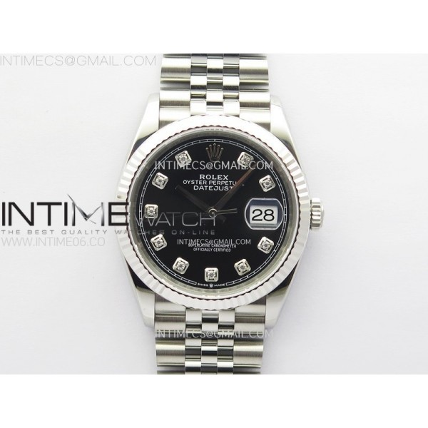 DateJust 36 SS 126234 VSF 1:1 Best Edition 904L Steel Black Dial Diamonds Markers on Jubilee Bracelet VS3235 > Rolex