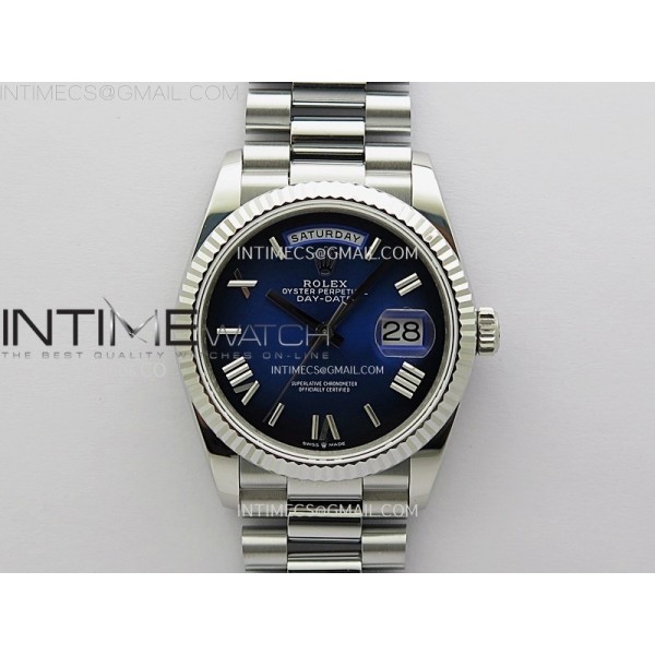 • Day Date 128239 Gain Weight SS QF 1:1 Best Edition Blue Dial Roman Markers on SS President Bracelet