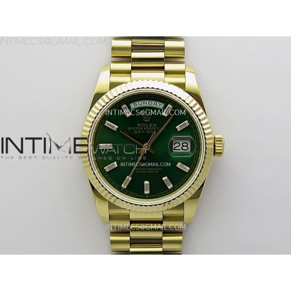 • Day Date 128238 Gain Weight YG QF 1:1 Best Edition Green Dial Diamond Markers on YG President Bracelet