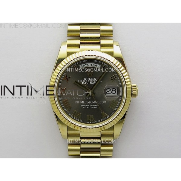 • Day Date 128238 Gain Weight YG QF 1:1 Best Edition Gray Dial Roman Markers on YG President Bracelet