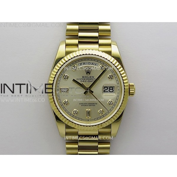 • Day Date 128238 Gain Weight YG QF 1:1 Best Edition Champagne Dial Diamond Markers on YG President Bracelet