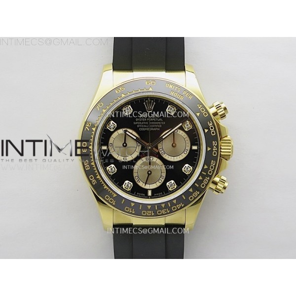 • Daytona 126518 904L YG QF Best Edition Black Dial Gold Subdial Diamonds Markers on Oysterflex Strap SA4131