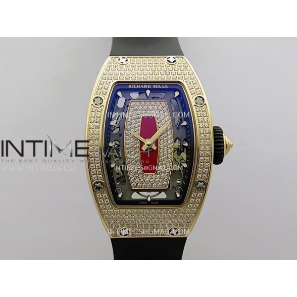RM07 Full Paved Diamond RG ZF Best Edition Red Diamond Skeleton Dial On Black Rubber Strap Asian CRMA2 Clone > RICHARD MILLE