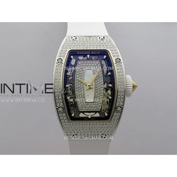 RM07 Paved Snowflake Cut Diamonds SS ZF Best Edition White MOP Diamond Skeleton Dial On White Rubber Strap Asian CRMA2 Clone > RICHARD MILLE