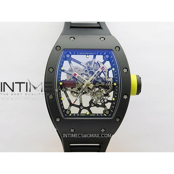 RM035 Americas Manual Carbon/Black Ceramic ZF 1:1 Best Edition Skeleton Dial On Black Rubber Strap Super Clone RMUL1 > RICHARD MILLE
