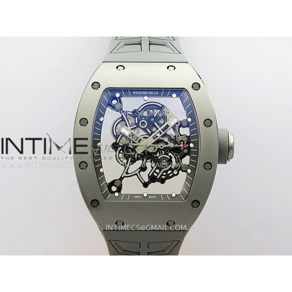 • RM055 Titanium Carbide ZF 1:1 Best Edition Skeleton Dial On Gray Shark Rubber Strap RMUL2 Super Clone