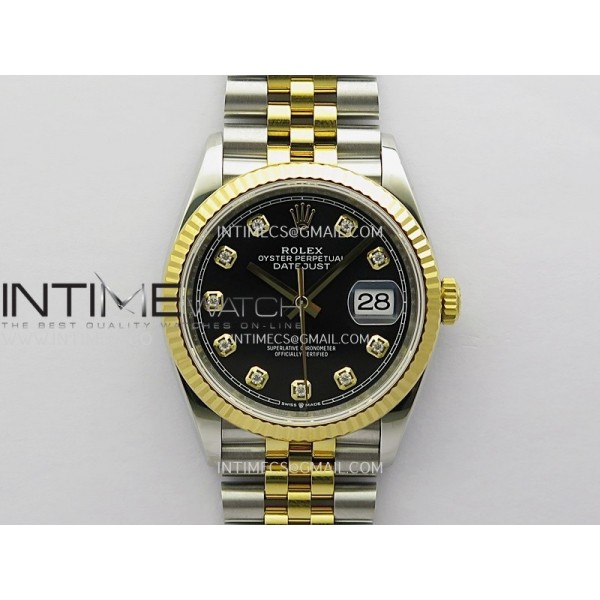 DateJust 126233 36mm 904L SS/YG VSF 1:1 Best Edition Black Dial Diamond Marker On Jubilee Bracelet VS3235 > Rolex