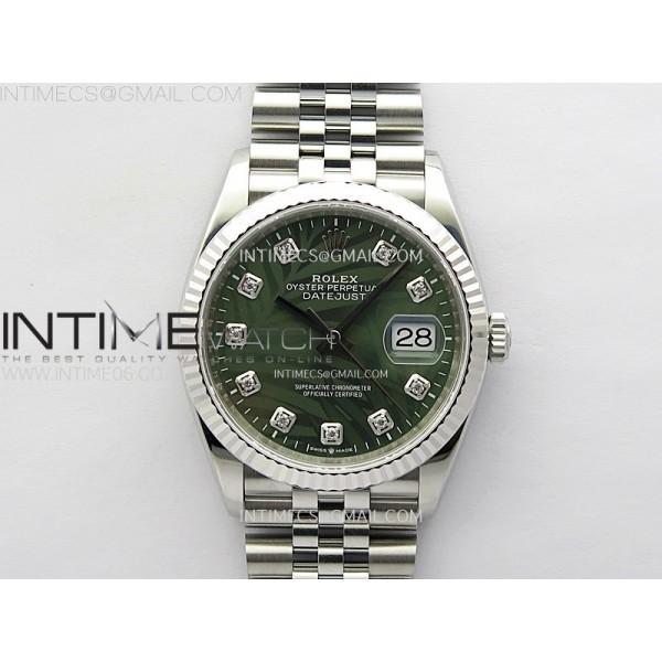 DateJust 36 SS 126234 VSF 1:1 Best Edition 904L Steel Green Leaves Dial Diamonds Markers on Jubilee Bracelet VS3235 > Rolex