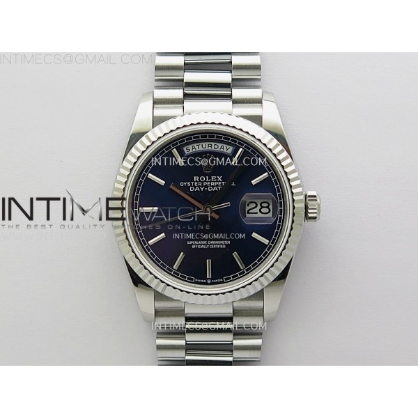 • Day Date 128239 Gain Weight SS QF 1:1 Best Edition Blue Dial Stick Markers on SS President Bracelet