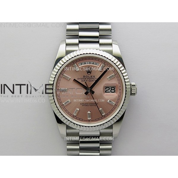 Day Date 128239 Gain Weight SS QF 1:1 Best Edition Pink Dial T-Diamond Markers on SS President Bracelet > Rolex
