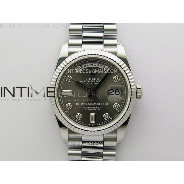 • Day Date 128239 Gain Weight SS QF 1:1 Best Edition Gray Dial Diamond Markers on SS President Bracelet