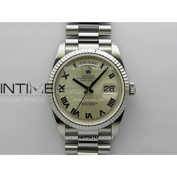 • Day Date 128239 Gain Weight SS QF 1:1 Best Edition Silver Dial Roman Markers on SS President Bracelet