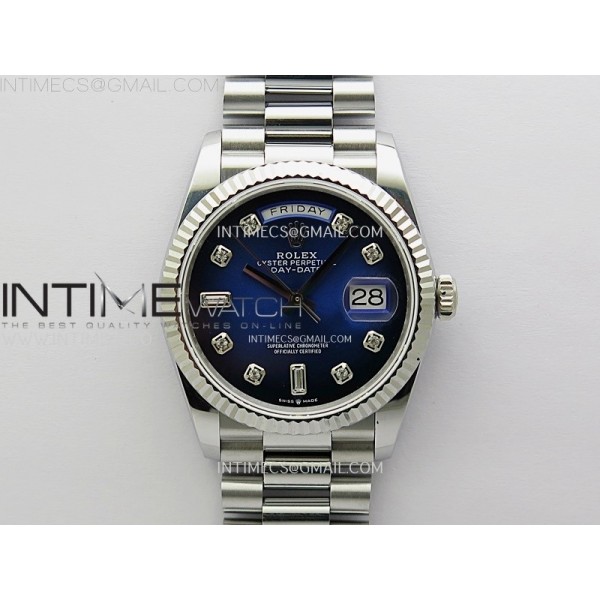 • Day Date 128239 Gain Weight SS QF 1:1 Best Edition Blue Dial Diamond Markers on SS President Bracelet