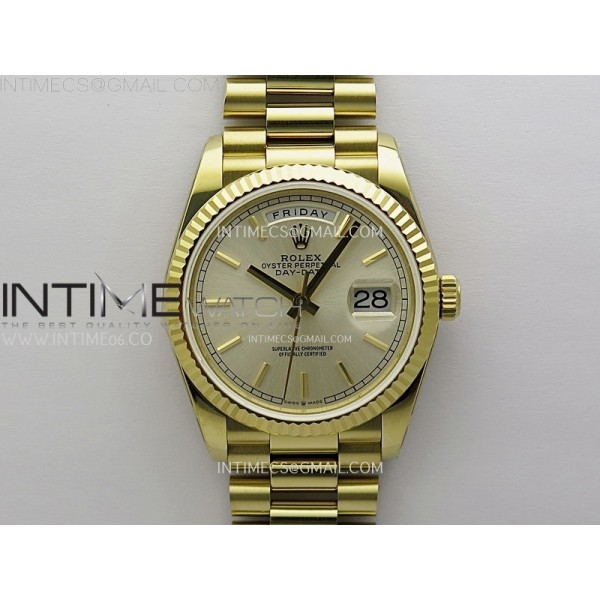 • Day Date 128238 Gain Weight YG QF 1:1 Best Edition Champagne Dial Stick Markers on YG President Bracelet