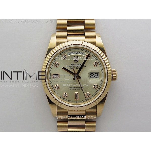 • Day Date 128235 Gain Weight RG QF 1:1 Best Edition Champagne Dial Diamond Markers on RG President Bracelet