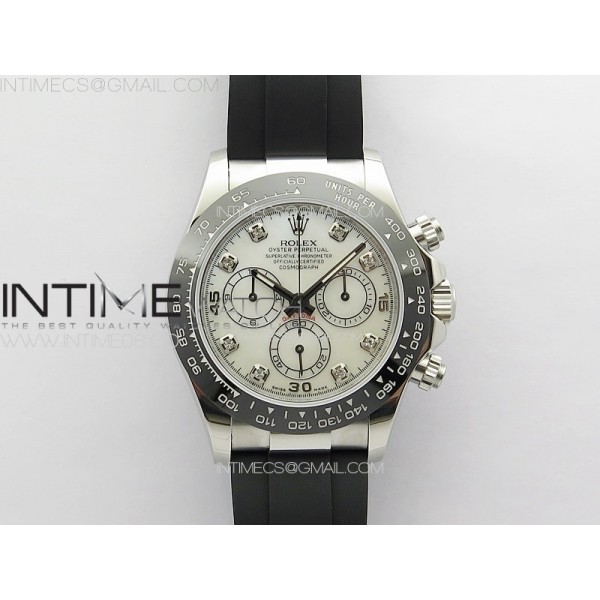 Daytona 116519LN APSF White MOP Dial Crystals Markers On Rubber Strap Slim A7750 > Rolex