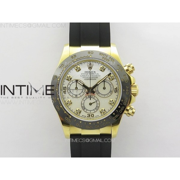 Daytona 116518LN YG APSF Best Edition White MOP Dial Crystals Markers On Rubber Strap Slim A7750 > Rolex