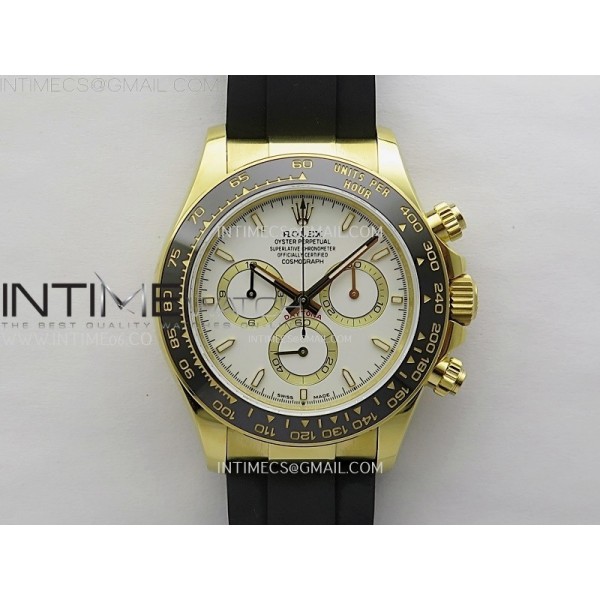 Daytona 126518 904L YG QF Best Edition White Dial White Subdial on Oysterflex Strap SA4131 > Rolex
