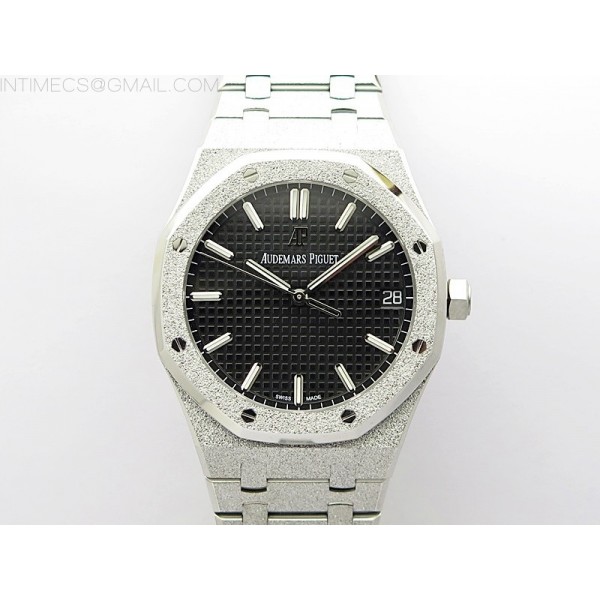 Royal Oak 41mm 15500 Frosted SS APSF 1:1 Best Edition Black Textured Dial on Frosted SS Bracelet SA4302 Super Clone > Audemars Piguet
