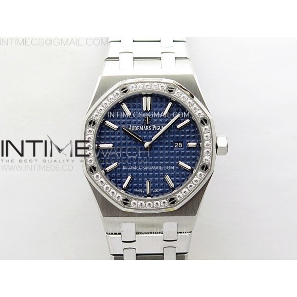 Lady Royal Oak 33mm 67651 Diamonds SS ZF 1:1 Best Edition Blue Textured Dial on SS Bracelet RONDA Quartz > Audemars Piguet
