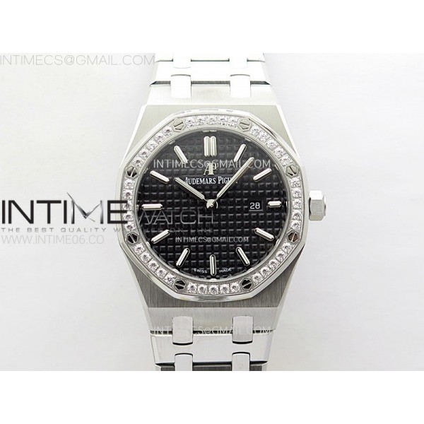 Lady Royal Oak 33mm 67651 Diamonds SS ZF 1:1 Best Edition Black Textured Dial on SS Bracelet RONDA Quartz > Audemars Piguet