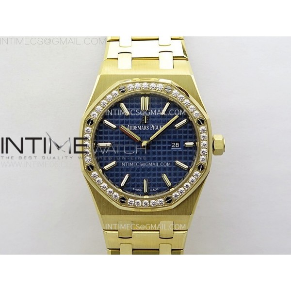 Lady Royal Oak 33mm 67651 Diamonds Bezel YG ZF 1:1 Best Edition Blue Textured Dial on YG Bracelet RONDA Quartz > Audemars Piguet