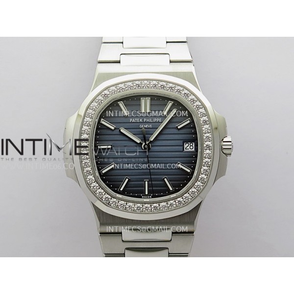 Nautilus 5711/1A 3KF 1:1 Best Edition Diamonds Bezel Blue Textured Dial on SS Bracelet A324 Super Clone V2 > Patek Philippe