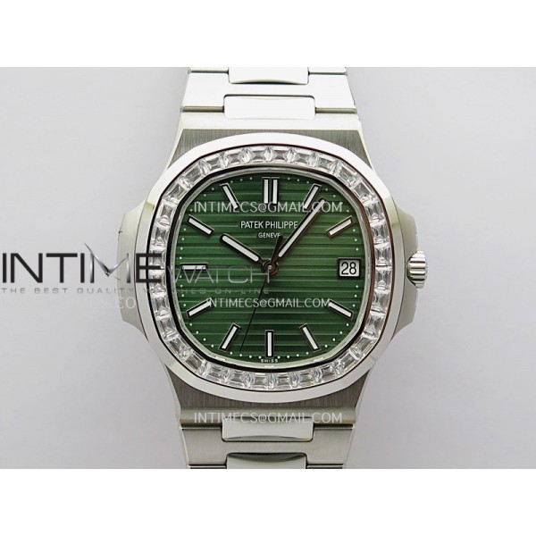 • Nautilus 5711/1A 3KF 1:1 Best Edition Diamonds Bezel Green Textured Dial on SS Bracelet A324 Super Clone V2