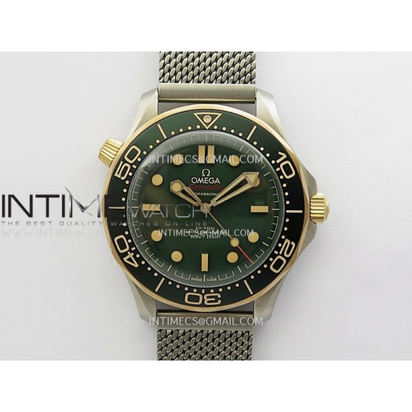 • Seamaster 300M Diver Titanium/Bronze Gold VSF 1:1 Best Edition Green Dial on Titanium Mesh Bracelet Asian Super Clone 8806