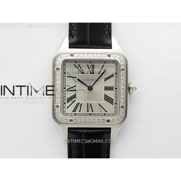 • Santos Dumont 43.5mm SS/Diamonds Bezel F1F Best Edition Silver Dial on Black Leather Strap Quartz
