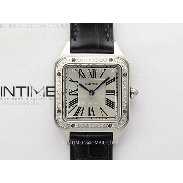 • Santos Dumont 38mm SS/Diamonds Bezel F1F Best Edition Silver Dial on Black Leather Strap Quartz