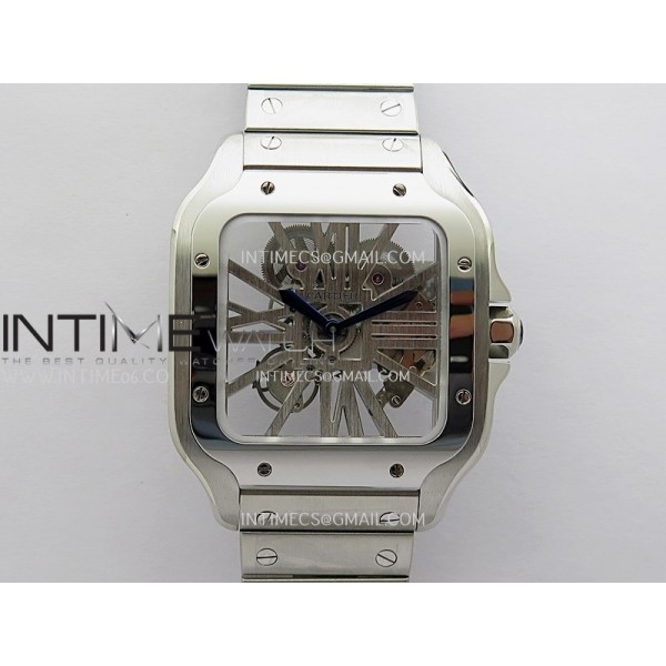 • Santos de Cartier Skeleton SS MLF Skeleton Dial On SS SmartLink Bracelet Super Clone 9611MC