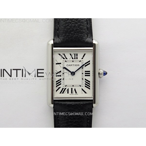 Tank Must Ladies 25mm SS AF 1:1 Best Edition White Dial on Black Leather Strap Ronda Quartz > Cartier