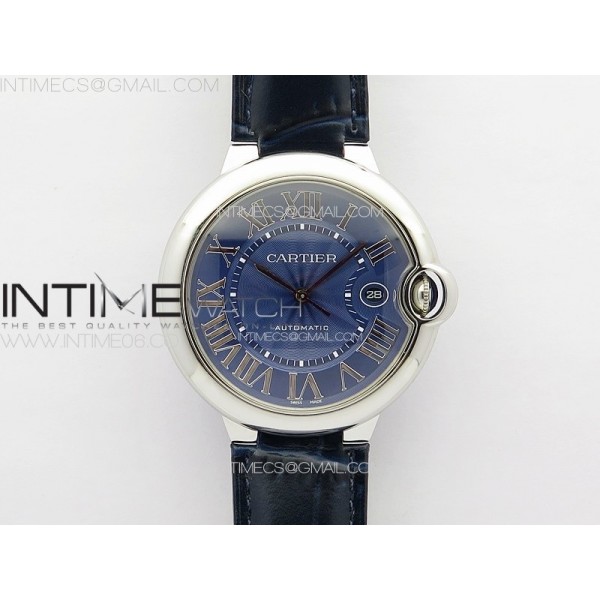Ballon Bleu 42mm SS 3KF 1:1 Best Edition Blue Texture Dial on Blue Leather Strap A2824 > Cartier