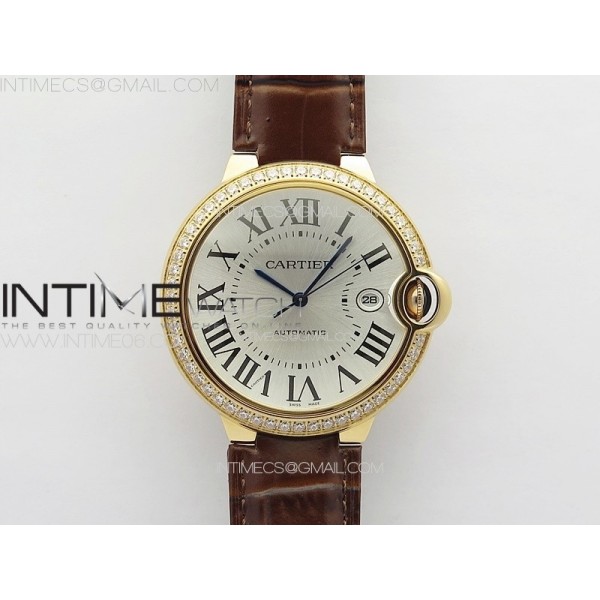 Ballon Bleu 42mm Diamonds Bezel RG 3KF 1:1 Best Edition Ice Blue Dial on Brown Leather Strap A2824 > Cartier