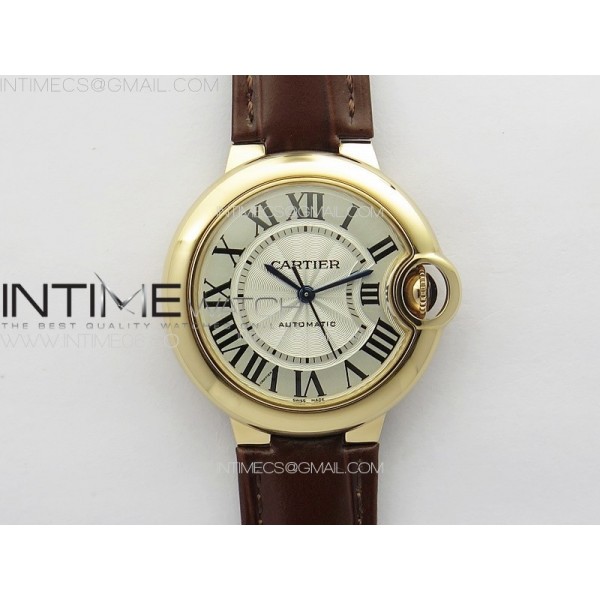 Ballon Bleu 33mm RG 3KF 1:1 Best Edition White Textured Dial on Brown Leather Strap A076 > Cartier