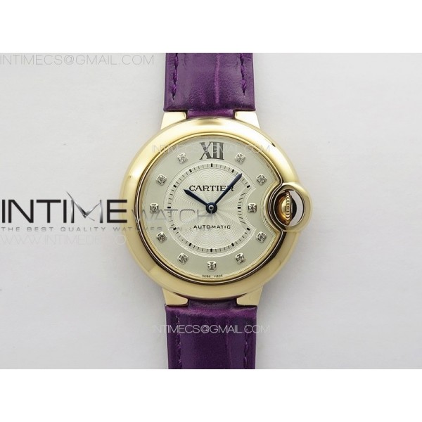 Ballon Bleu 33mm RG 3KF 1:1 Best Edition White Textured Dial on Purple Leather Strap A076 > Cartier
