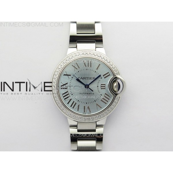 Ballon Bleu 33mm Diamonds Bezel SS 3KF 1:1 Best Edition Ice Blue Dial on SS Bracelet A076 > Cartier