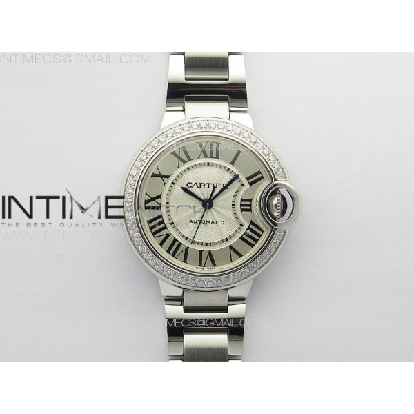 Ballon Bleu 33mm Diamonds Bezel SS 3KF 1:1 Best Edition White Textured Dial on SS Bracelet A076 > Cartier