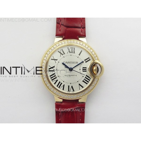 Ballon Bleu 33mm Diamonds Bezel RG 3KF 1:1 Best Edition White Dial on Red Leather Strap A076 > Cartier