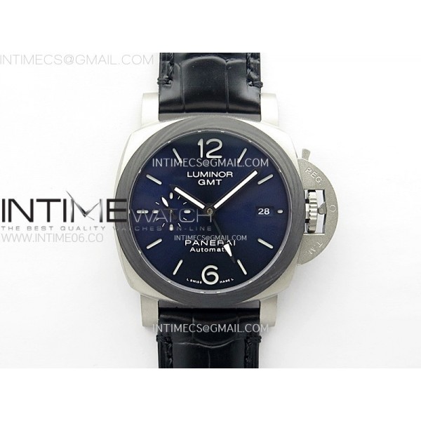 PAM1279 X Luminor GMT 42mm Titanium VSF 1:1 Best Edition Blue Dial on Black Leather Strap P.9011 Super Clone > PANERAI