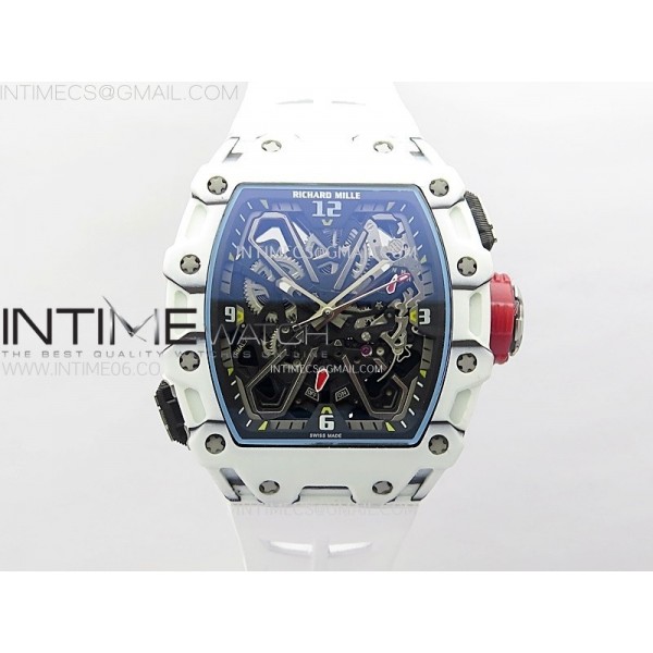 RM035-03 White Carbon/Red Crown Z Factory Skeleton Dial on White Rubber Strap Asian Skeleton movement > RICHARD MILLE