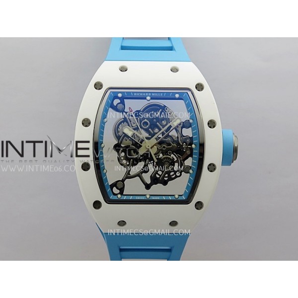 RM055 White Ceramic Blue Inner Bezel APSF 1:1 Best Edition On Blue Rubber Strap RMUL2 Super Clone > RICHARD MILLE