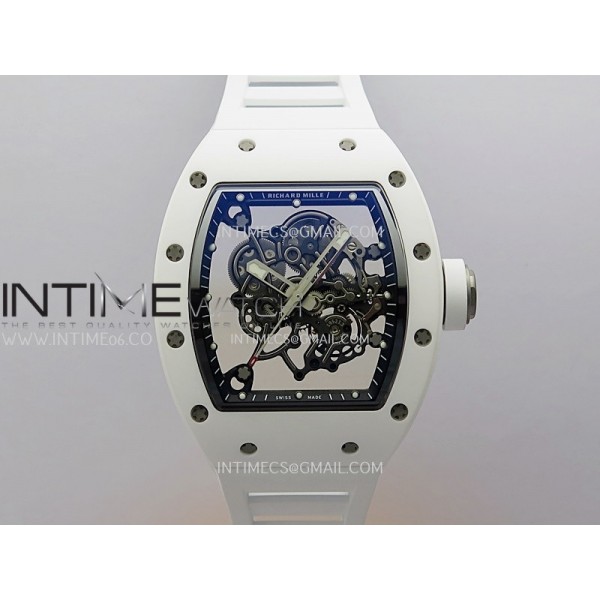 RM055 White Ceramic APSF 1:1 Best Edition Skeleton Dial on White Rubber Strap RMUL2 Super Clone > RICHARD MILLE
